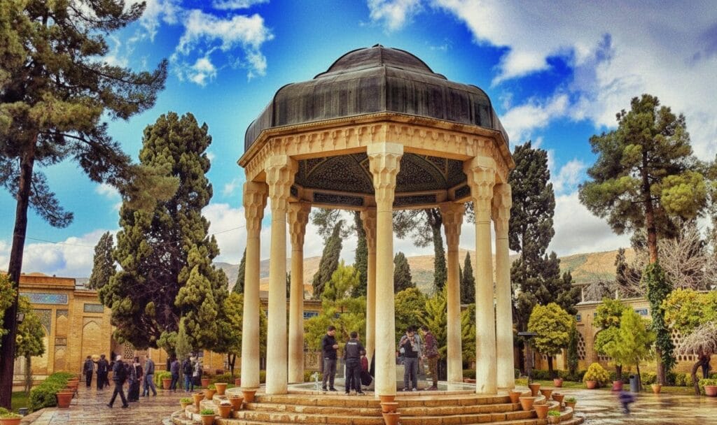 • Tomba di Hafez. Più che una semplice tomba è un sacrario laico dove gli iraniani si recano per leggere le sue poesie, chiedere un sortilegio e rendere omaggio al loro poeta più amato. Il complesso attuale, progettato dall’archeologo e architetto francese André Godard nel 1935, è una raffinata sintesi di modernità e tradizione, con il padiglione ottagonale sormontato da una cupola a cappello di derviscio, che si specchia nelle acque del giardino.